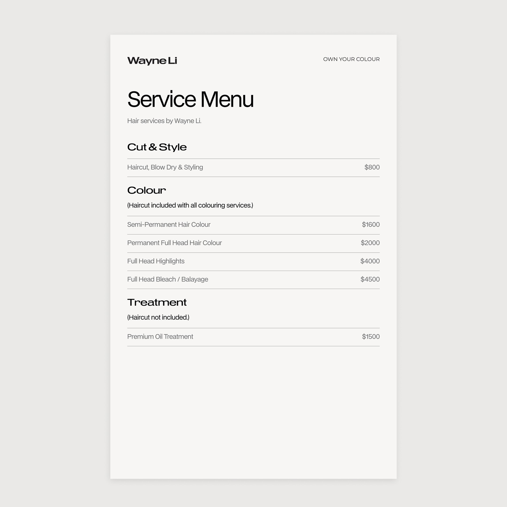 Worked closely with Wayne to reposition his personal brand, pricing narrative, and digital presence to support higher value positioning, pricing confidence, and authority within hair colouring.